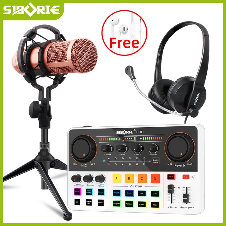 BEST Siborie H500 Soundcard+BM800PRO Mic+H2 Headphone Paket Lengkap Set Bluetooth Sound Card Mikrofon With Stand