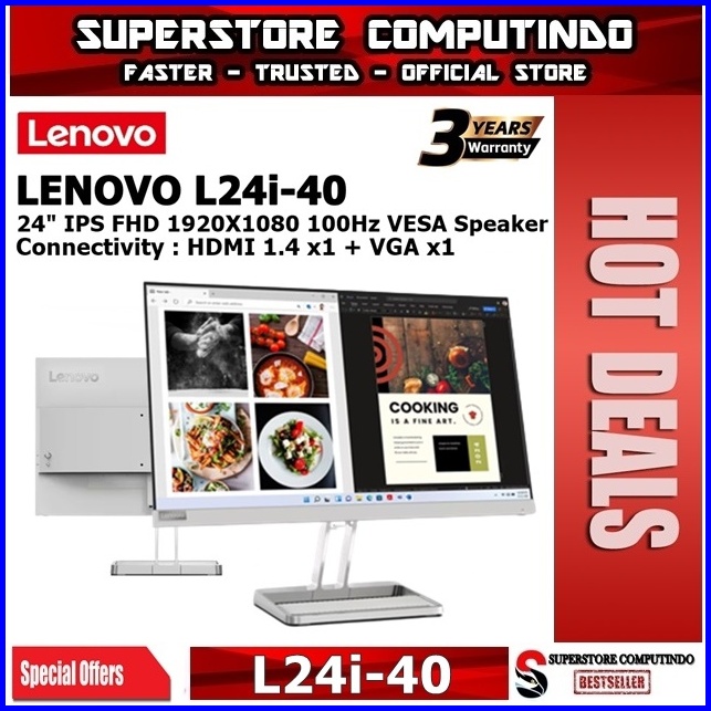 Monitor Led Lenovo L24i-40 L24i-4a 24 Ips 1080p 100hz Vga Hdmi Speaker Vesa