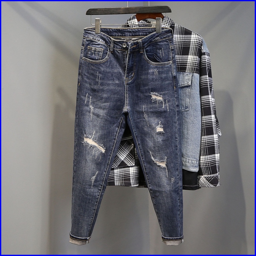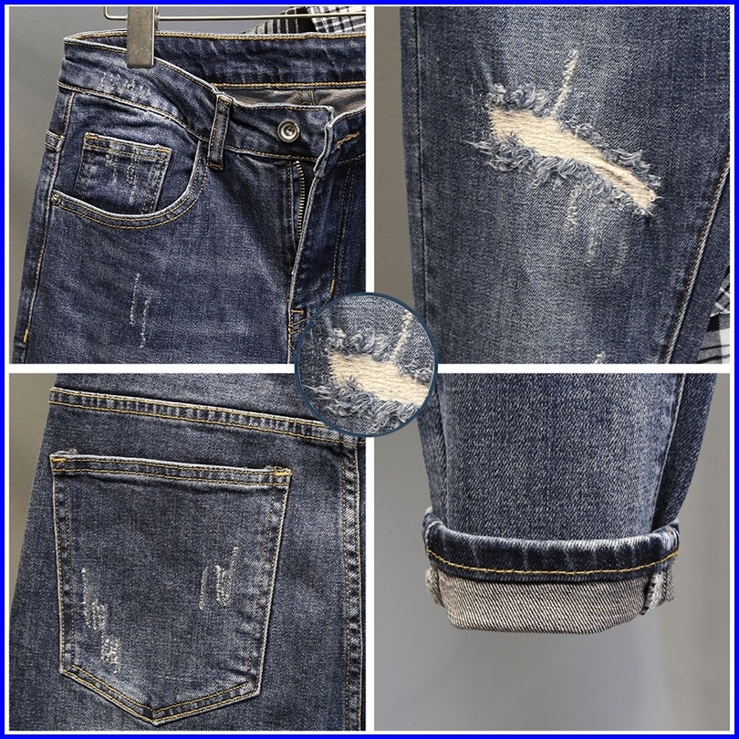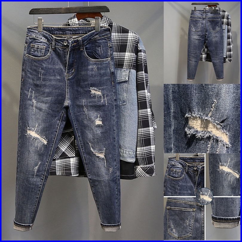 2025 Celana Sobek Pria Terbaru Jeans Pria Sobek Celana Panjang Priadewasa Celana Jeans Slim Fit Pria Ripped Jeans Pria C