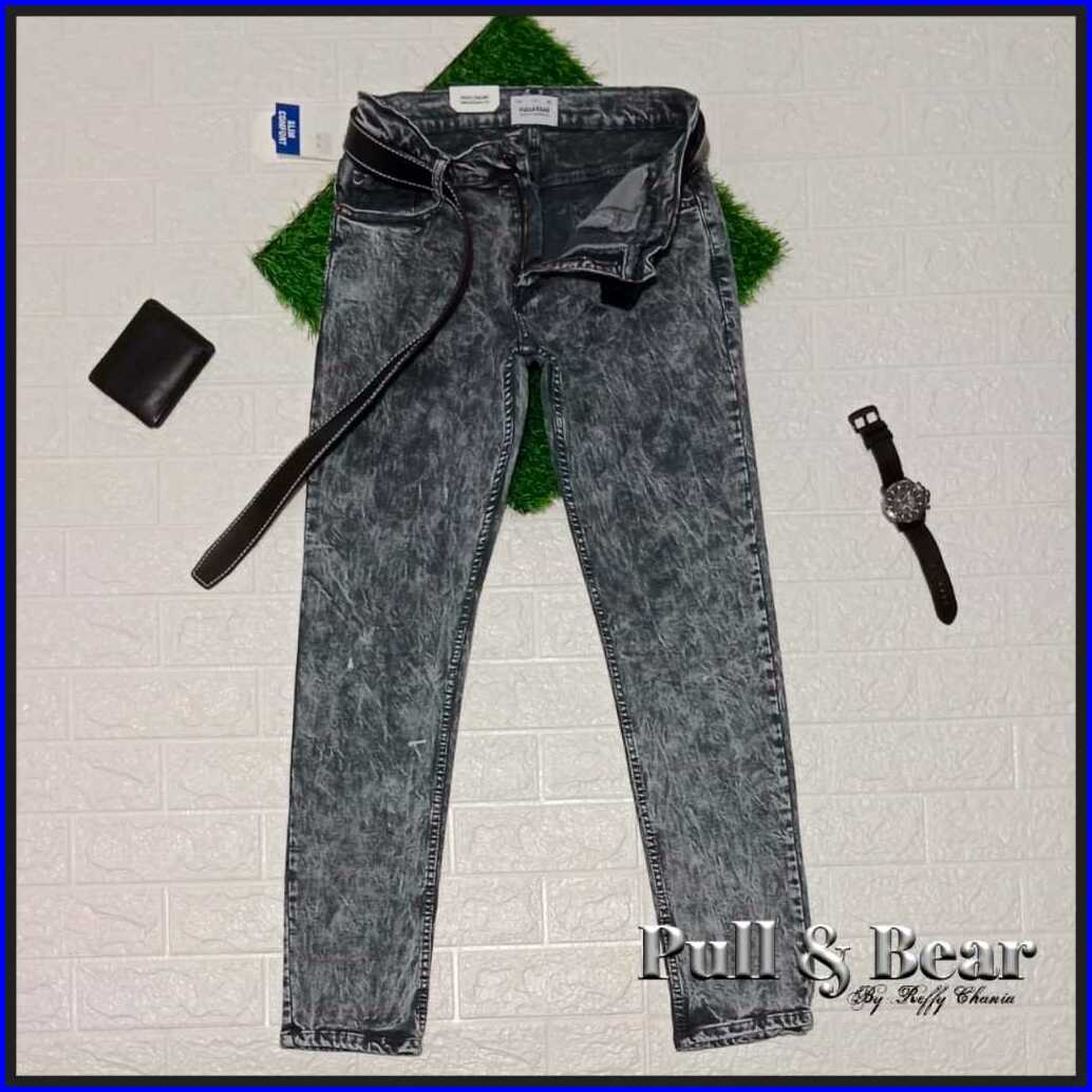 Pull Bear Snow Gray Celana Jeans Streetch Panjang Slimfit Pria Dewasa