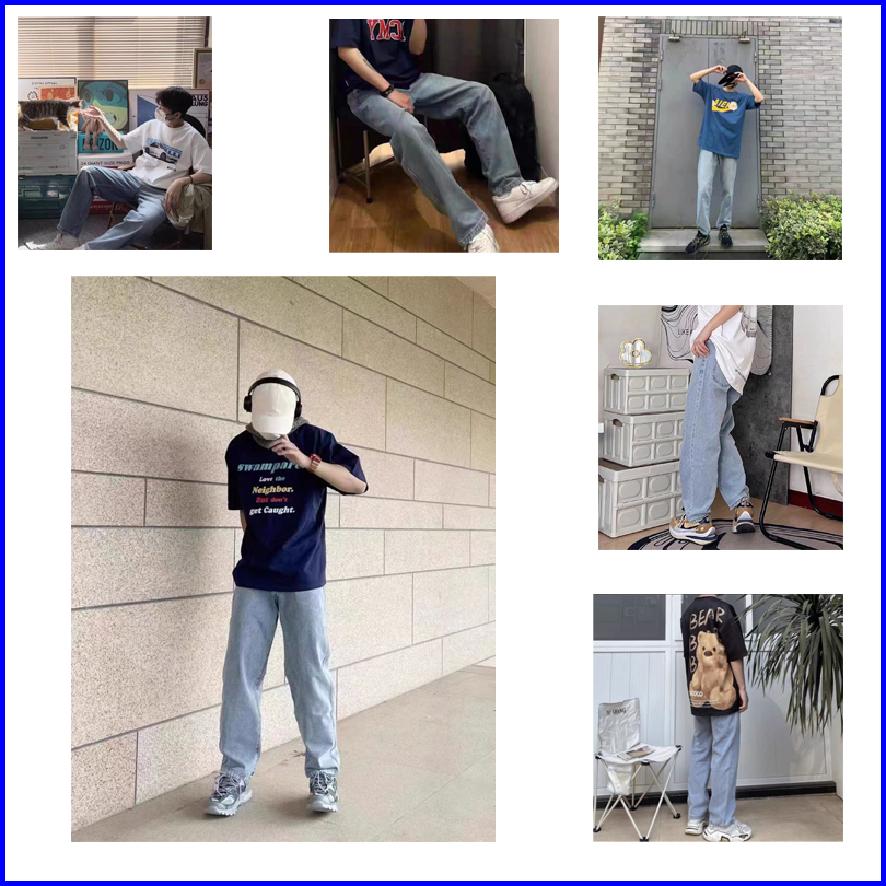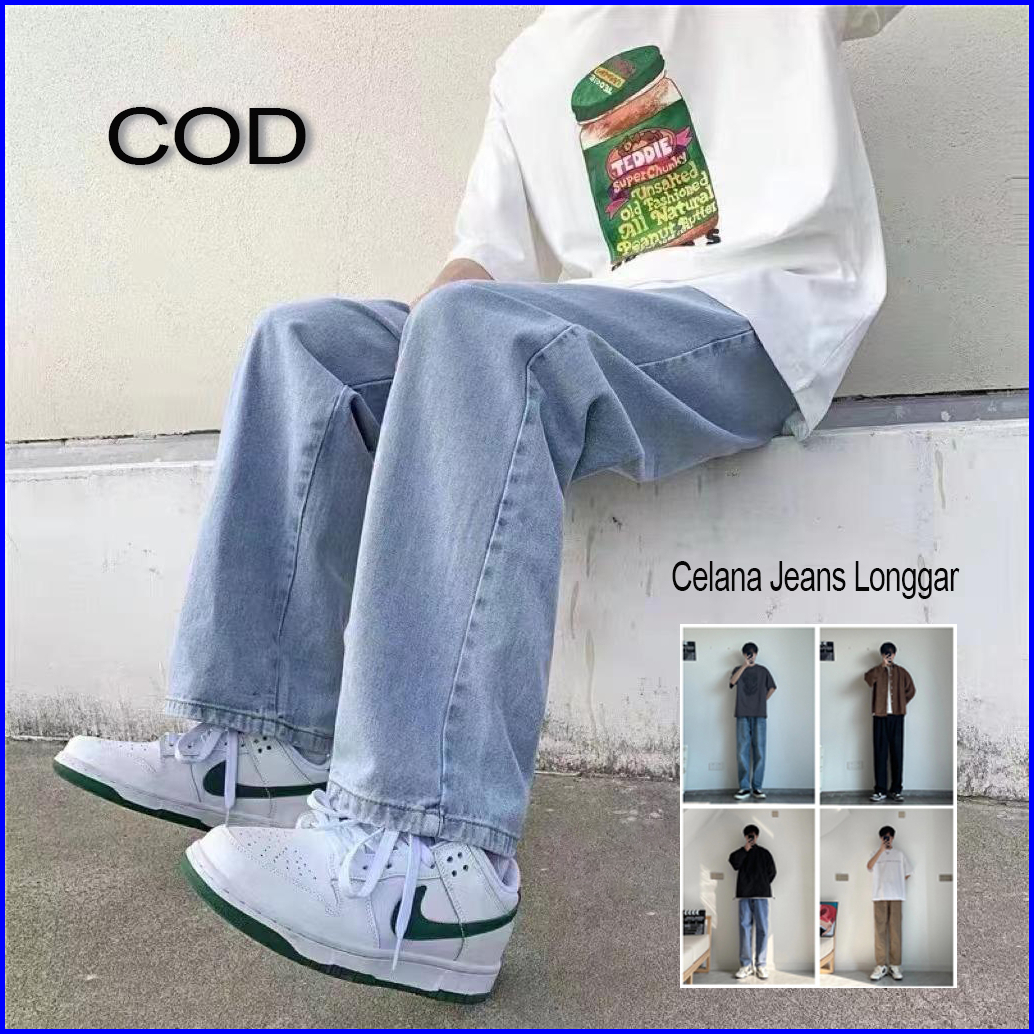 Celana Jeans Straight Pria Jumbo Celana Longgar Pria Jeans Light Blue Pria Baggy Pants Pria Celana Kulot Jeans Pria Cela
