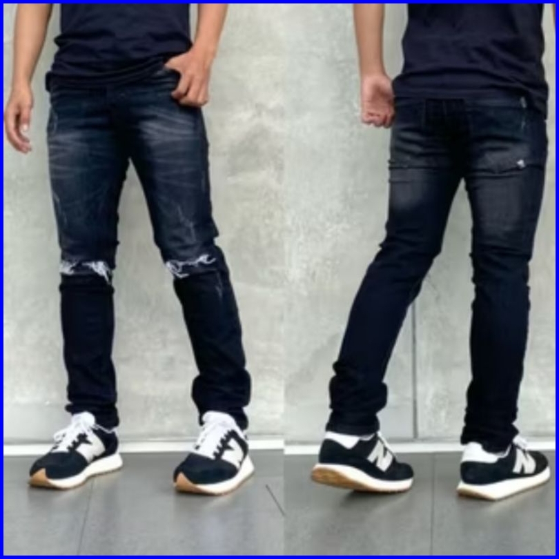 Celana Jeans Sobek Ripped Celana Robek Lutut Pria