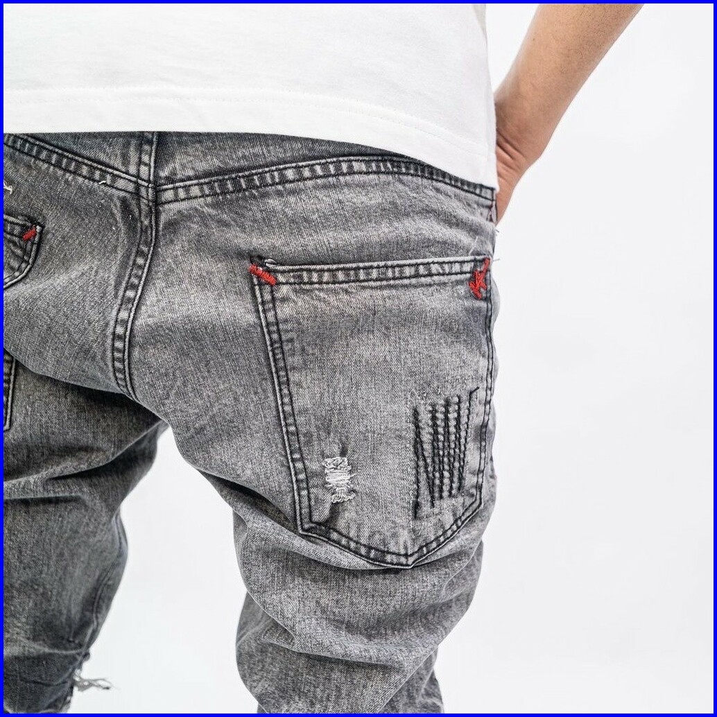 M1 Tri Biker Celana Jeans Acid Grey Sobek Tertambal