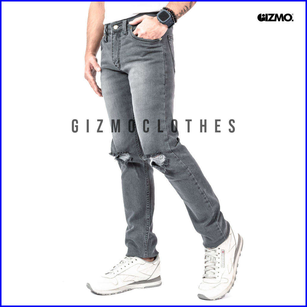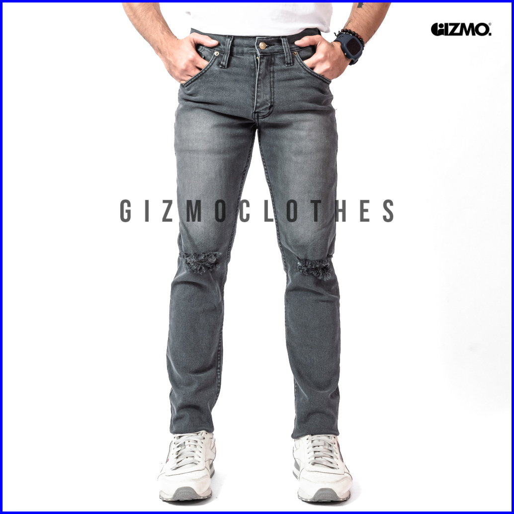 Gizmo - Celana Sobek Pria Grey Stone Ripped Jeans Robek Lutut Soft Denim Strech Skinny Fit Grey Stone Ripped