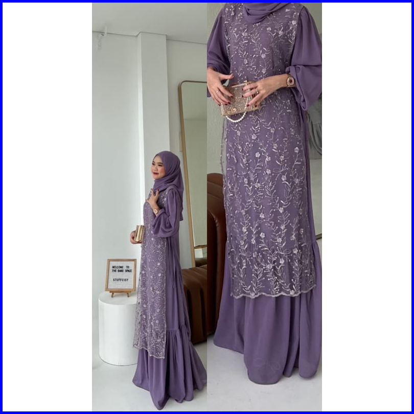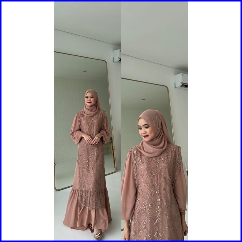 New - Tya Dress Inner Outer Ceruti Babydoll Kombinasi Brukattille Gamis Kondangan Baju Dewasa Murah Terbaru 2023 Busui F