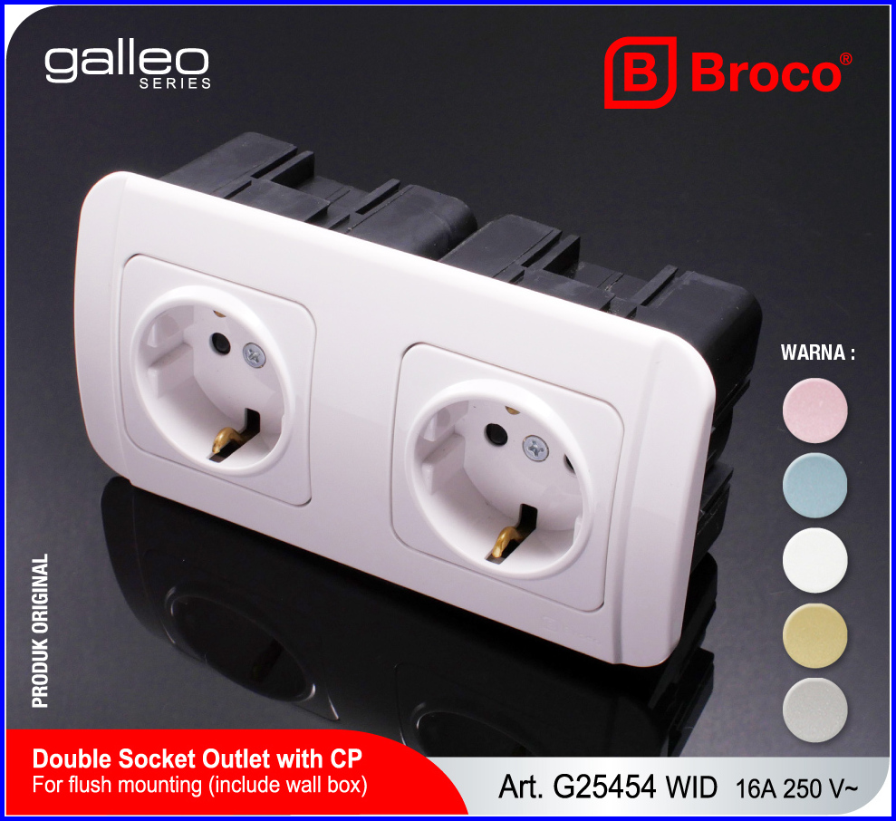 Broco Electrical Galleo G25454 B Stop Kontak Child Protection 2 Gang Wid