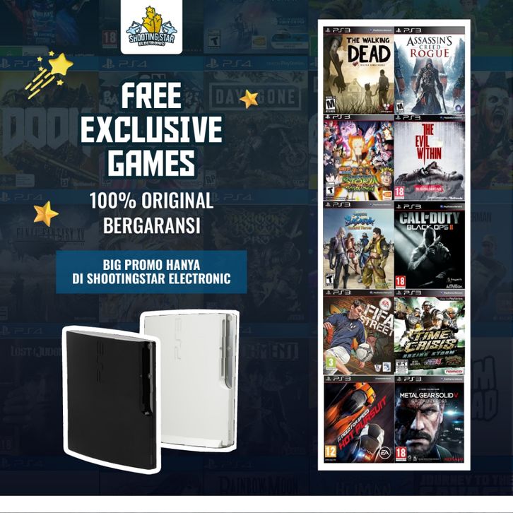 PS3 Slim Seri 25 Second Sony 160GB / 250GB / 320GB / 500GB / 1TB Garansi 12 Bulan Stick Original Mesin