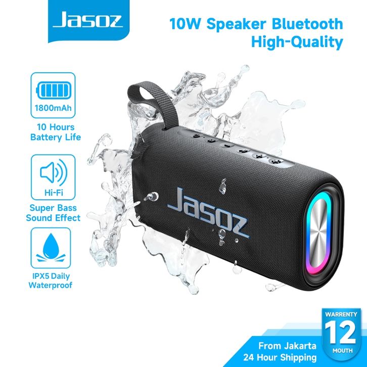 Jasoz Wireless Speaker 10W Bluetooth 5.3 IPX5 Waterproof RGB Light 1800mAh Portable-Gargansi 1 Tahun