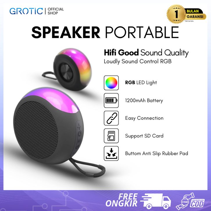 GROTIC Speaker Bluetooth Portable Hifi Good Sound Quality RGB LED Light