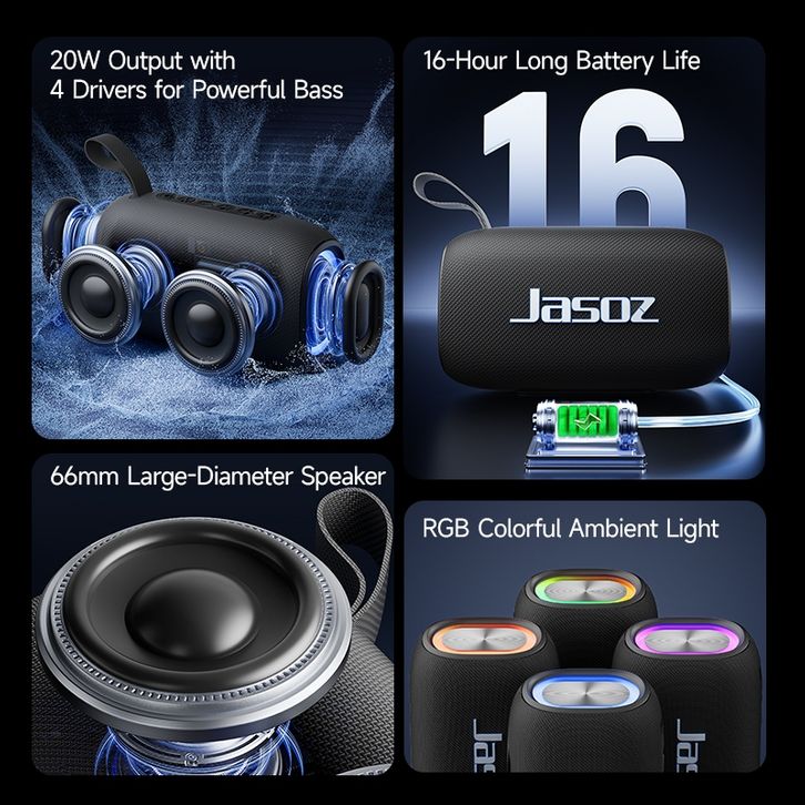 Sobeke Speaker Super Bass Bluetooth 5.3 Wireless 20W IPX5 Waterproof Sound TWS Protable Speaker-JM15