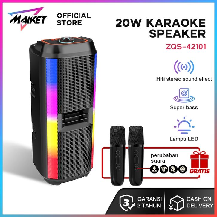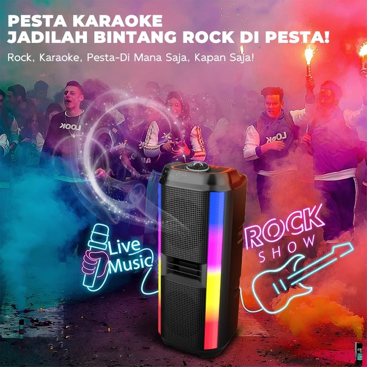 MAlKET Speaker Bluetooth Karaoke Super bass Subwoofer 2Mic Wireless USB/FM/AUX/RGB Garansi 3 tahun