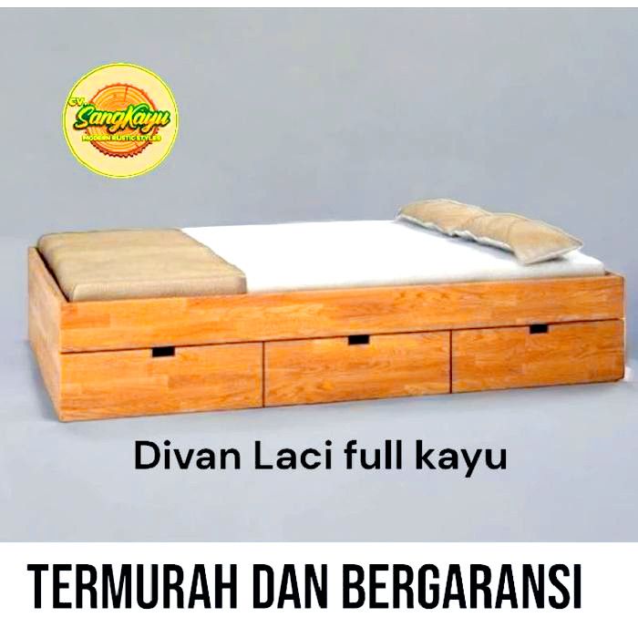 Divan Kayu laci Divan kayu minimalis Ranjang kayu Ranjang matras - 80x150 cm