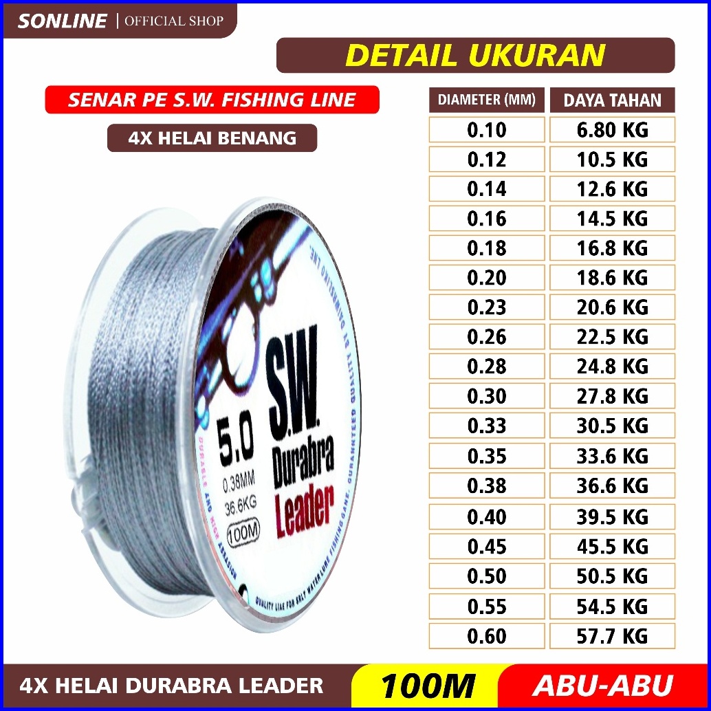 Sonline Tali Pancing 100m Senar Pancing Anti Keriting Sangat Kuat 100meters Tali Pancing Sw