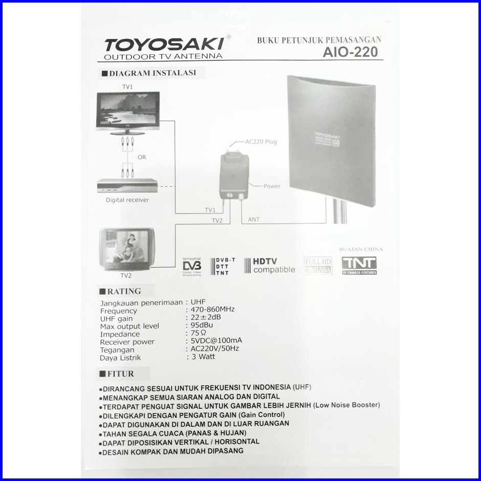 Aio220aw Antena Tv Indoor Outdoor Digital Analog Antena Toyosaki Aio 220 Aw