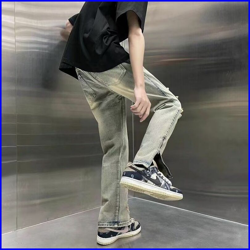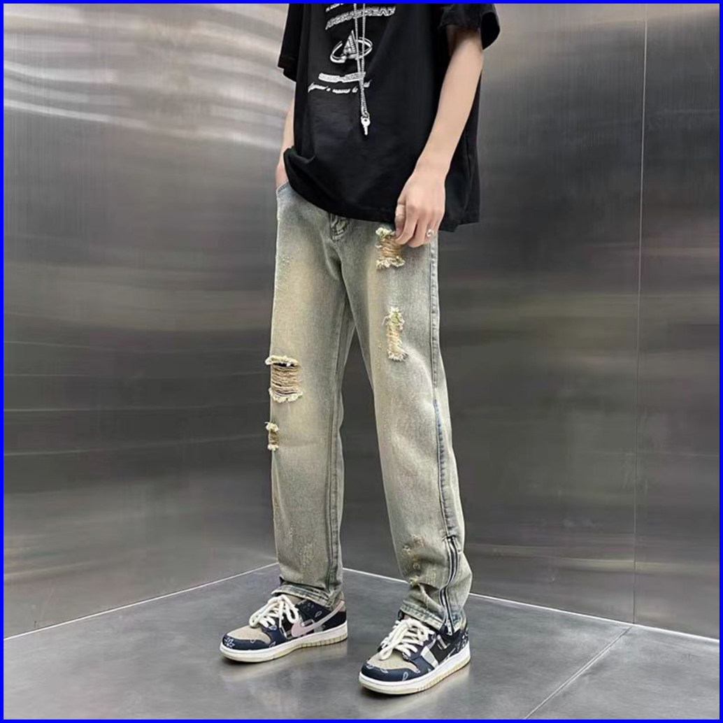 Celana Jeans Pria Panjang Sobek Retro Biru Baggy Pants Robek Straight Cowok Celana Denim Dewasa Laki Laki Ripped Jins Ku