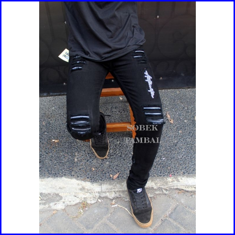 Celana Jeans Sobek Pakai Lapisan Celana Panjang Jeans Pria Emblem Sobek Ripped Celana Jeans Pria Terbaru 2024 Celana Pan