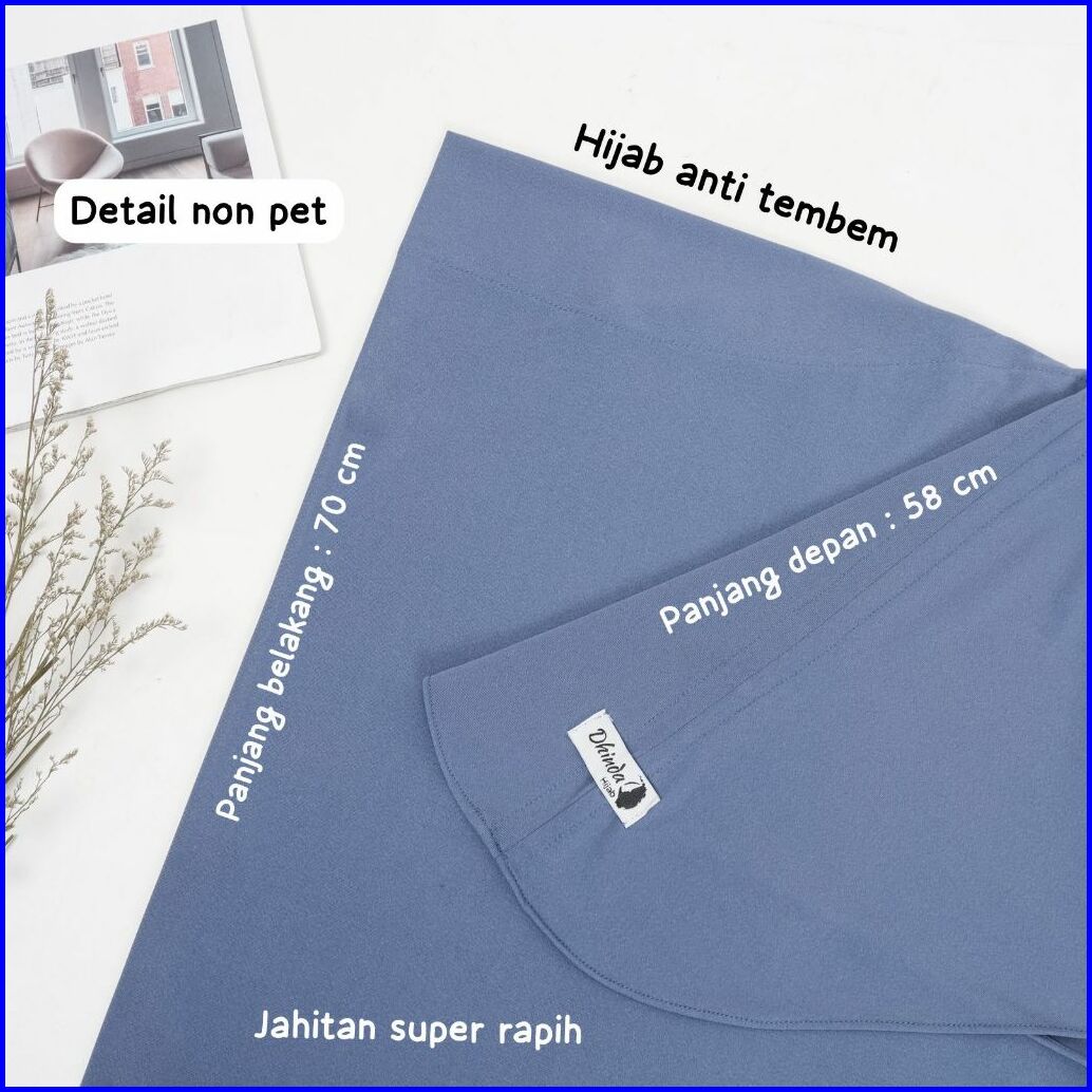Hitam, Putih, Broken white, Nutella, milo, Softmilo, Latte, khaky, coksu, pramuka, Tan, Plum, Lavender, aurora, Dark purple, Magenta, Dusty, salem, dove, Fuschia, Grey, Darkgrey, navy, denim, Biru elektrik, maroon, Merah hati, Chili, Mustard, Lemon, Teracotta, Sage, Olive, zaitun, Hijau Tua, tosca, Turkish blue, Hijau bottle, Hijau Lumut, Wardah, Hitam (jersey rayon), Nutella(jersey rayo), Latte (jersey rayon), Frasco(jersey rayon), Almond(jersey rayon), Hazelnut(jers rayon)