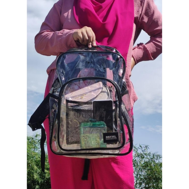 MARSEL - Tas Ransel Wanita Transparan Terbaru Serbaguna Stylis Laptop Sekola Olahraga dan Lain Lainya Bahan Mika Premium