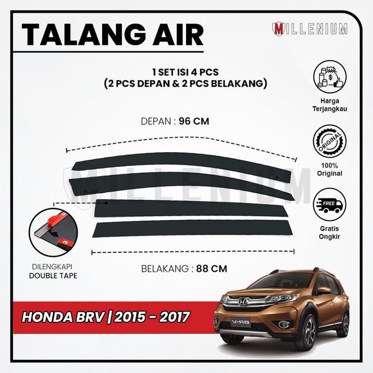 Talang Air Pintu Mobil Honda BRV 2015 - 2017 Model Flat Rata 4 Pintu