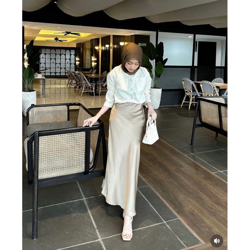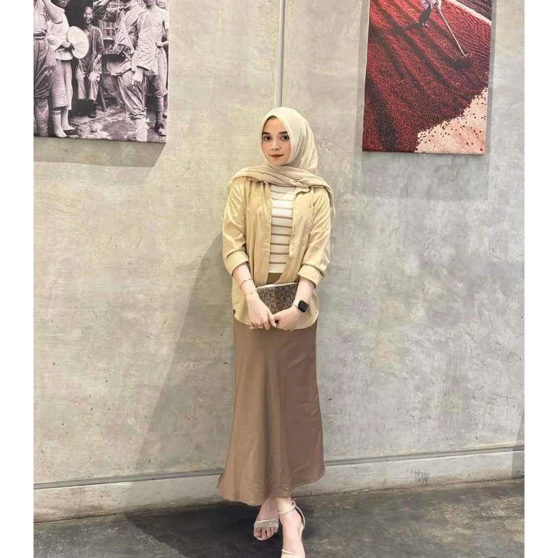 Rok Satin Silk Premium - Satin Skirt Midi Lenght Panjang Rok Slik korean Style Basic Wanita