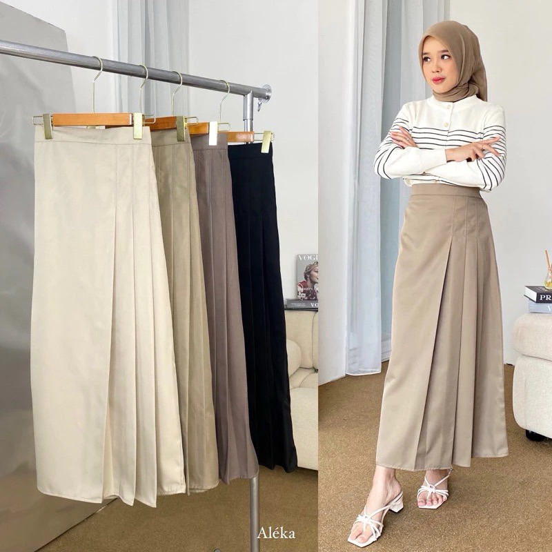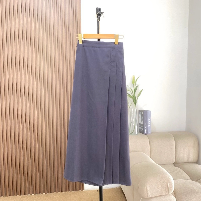 Rok Panjang Wanita High Waist A-Line Elegan | Rok Lipat est Look Korean Style – Formal, Kerja, Kasual