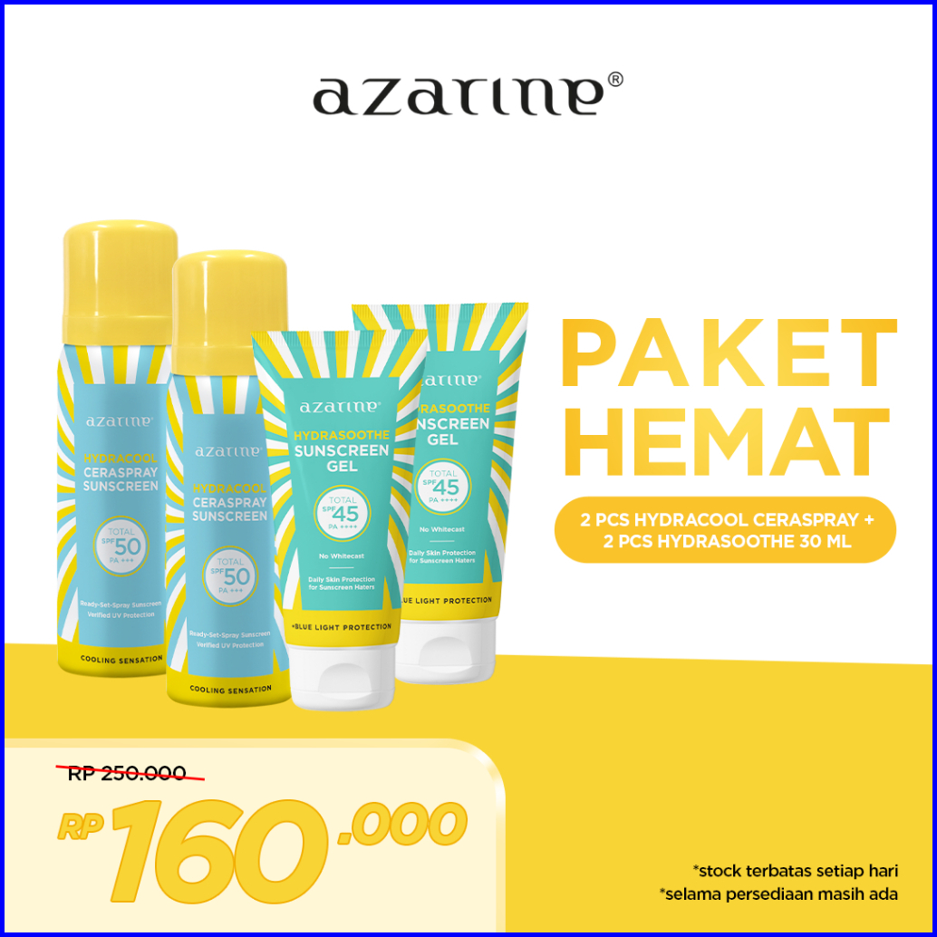 Azarine Sunscreen Best Seller Combo 2 Pcs Ceraspray 2 Pcs Hydrasoothe Sunscreen Gel Spf45 Pa 30 Ml