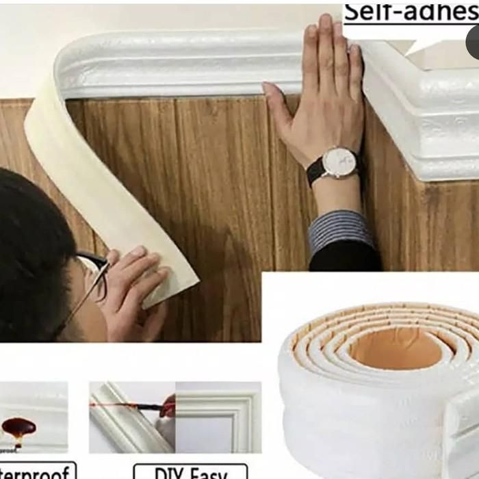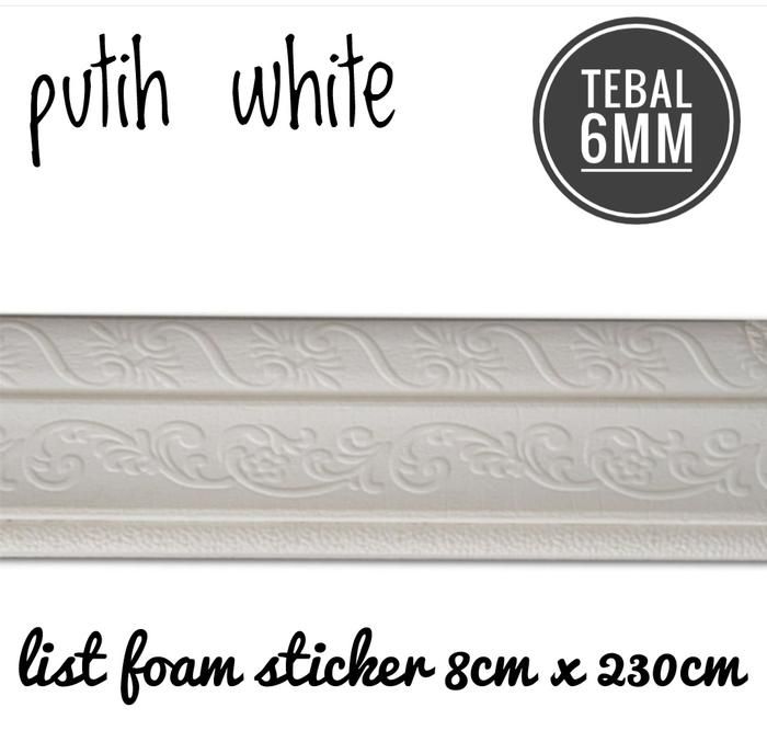 Wallpaper list profil border foam sticker 3D 8x230 cm tebal 6mm PUTIH - 8cm