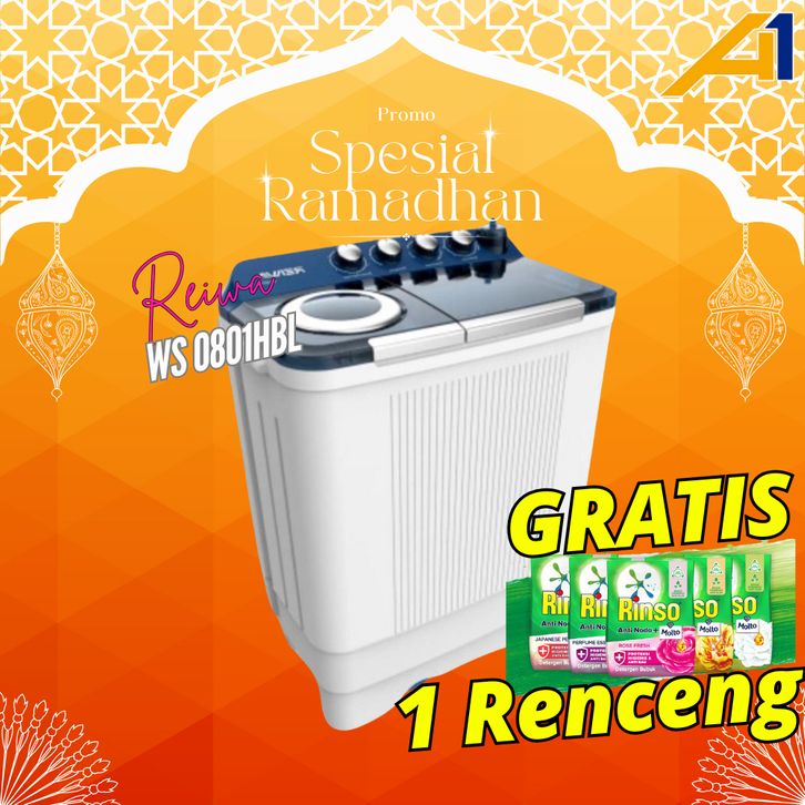 Mesin Cuci Dua Tabung REIWA WS 0801 / WS0801 2 Tabung 7 Kg Putih Twin Tub