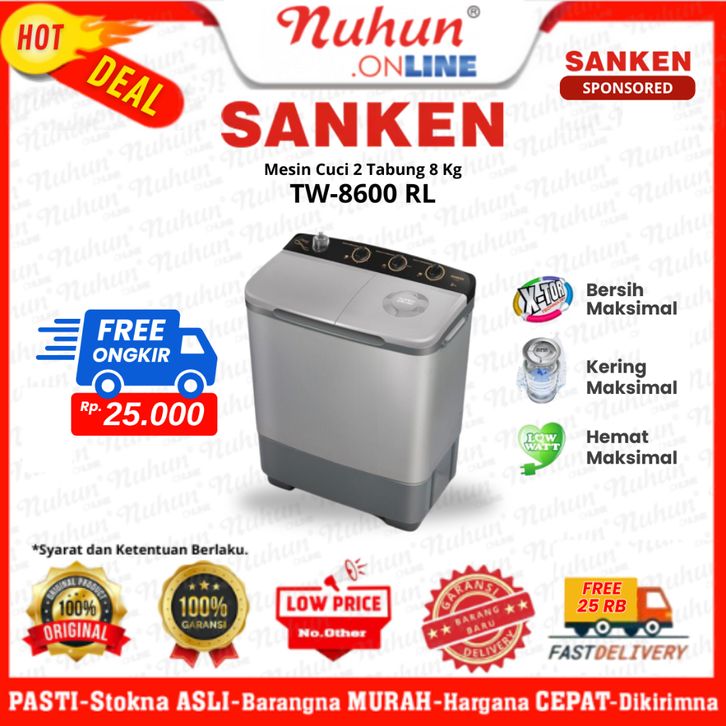 Sanken Mesin Cuci 2 Tabung TW-8600 Anti Alergi 8kg