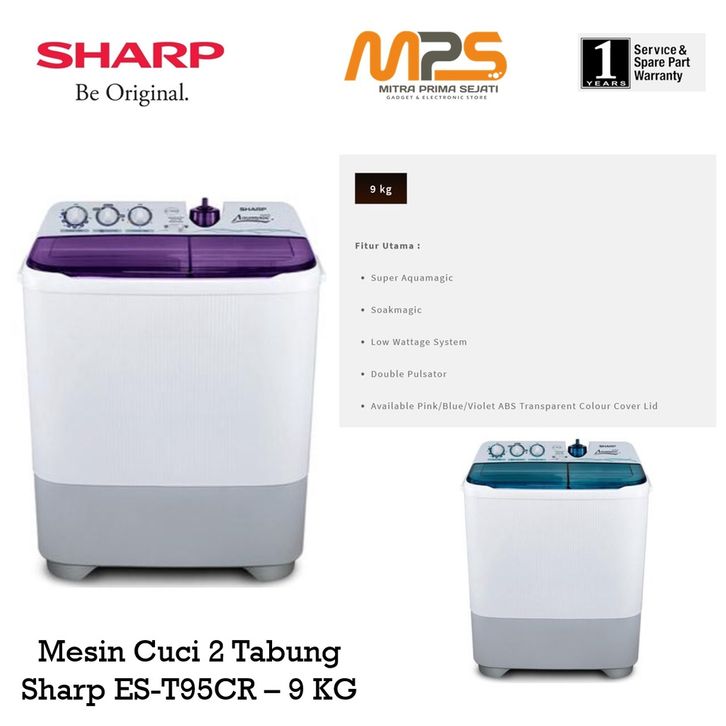 Mesin Cuci 2 Tabung Sharp ES-T95CR - 9 KG