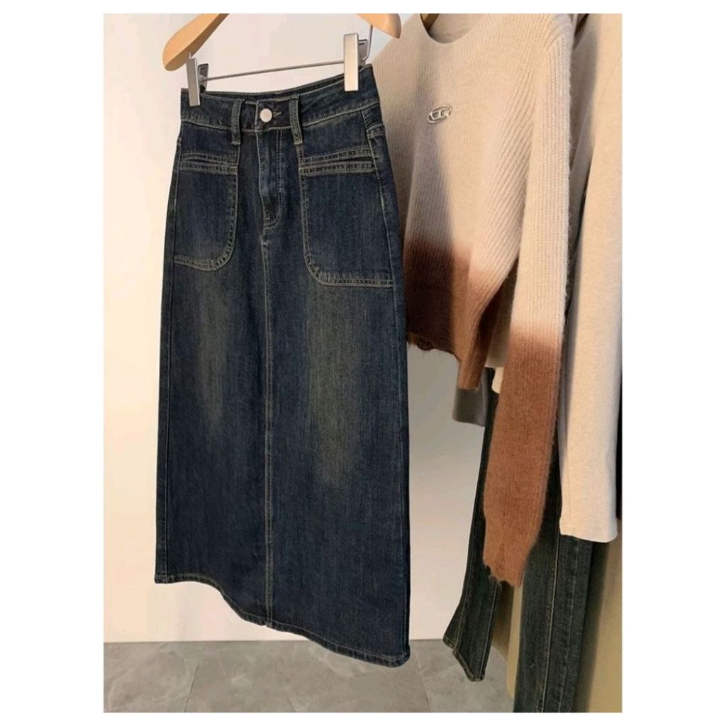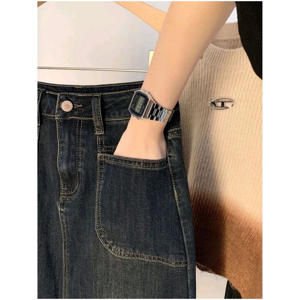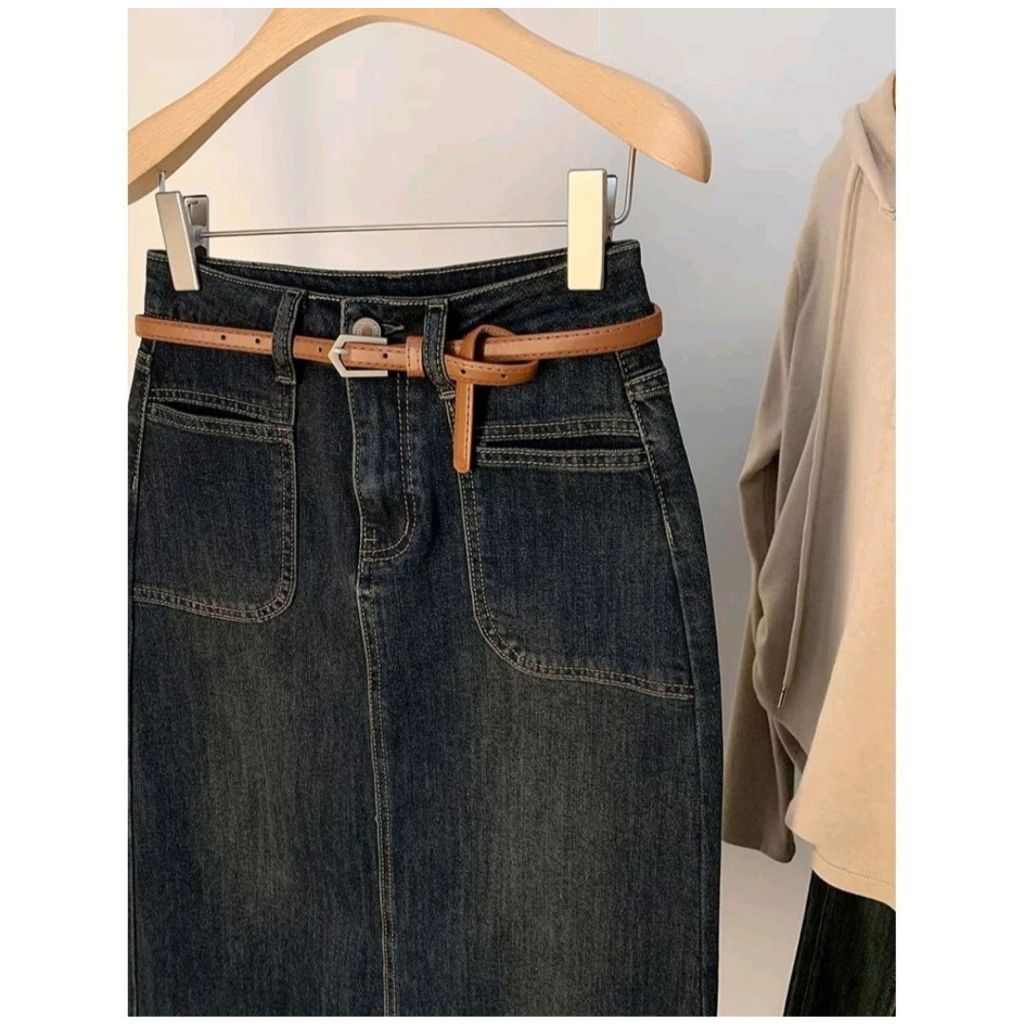 Blue Treads - Chelia Rok Jeans Skirt Panjang Wanita Kancing Karet Belah Belakang