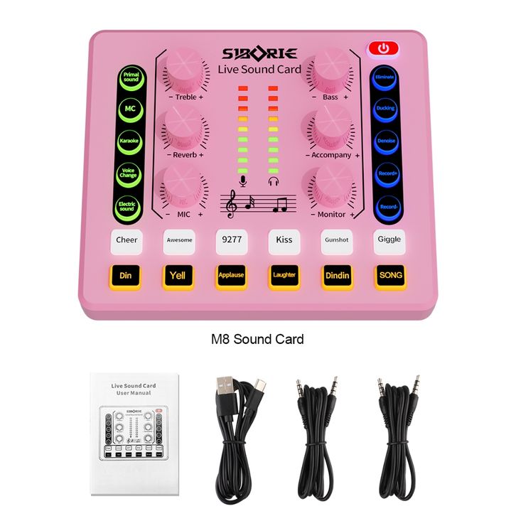 BEST Siborie M8 Pink Soundcard Bluetooth Live Sound Card External For Streaming Media
