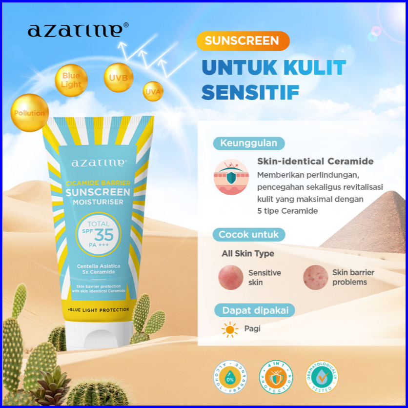 Buy 1 Get 2 Azarine Niacinamide 10 Serum Cicamide Barrier Sunscreen Moisturiser Spf35 Pa Hanya 99rb