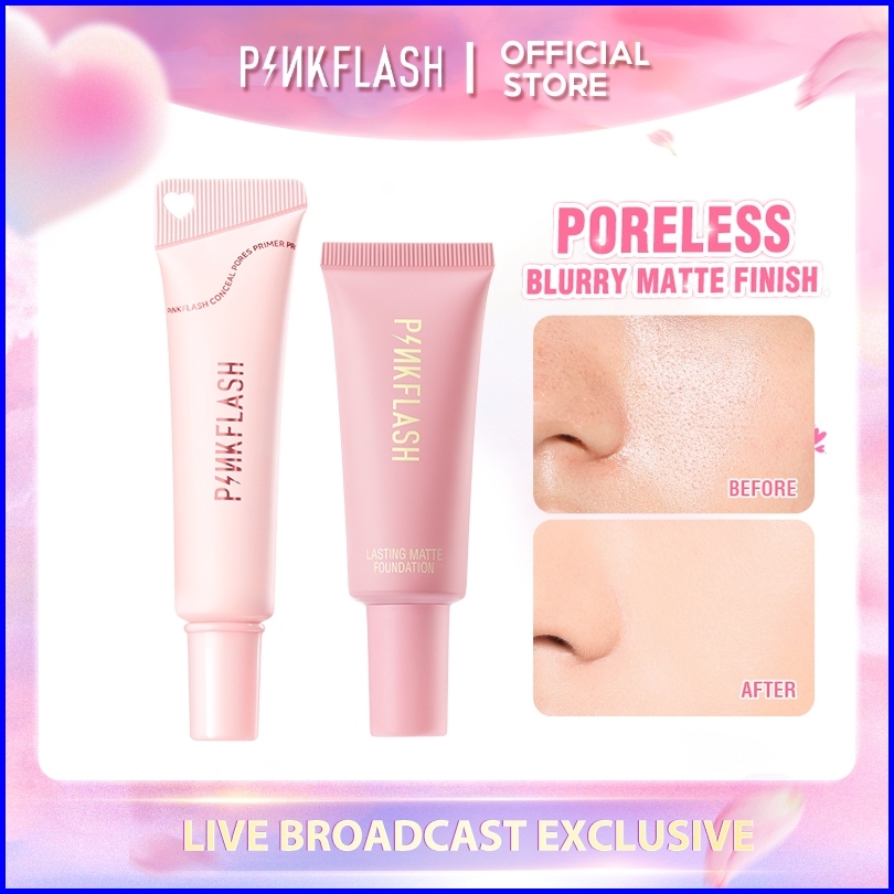Live Exclusivepinkflash Poreless Matte Finish Face Makeup Set Poreless Brightening Primer Matte Foundation