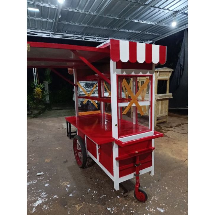 gerobak jualan nasi kuning full kaca dan satu set meja kursi