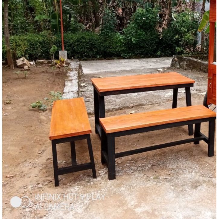 gerobak bubur ayam dan satu set meja kursi duduk full kaca