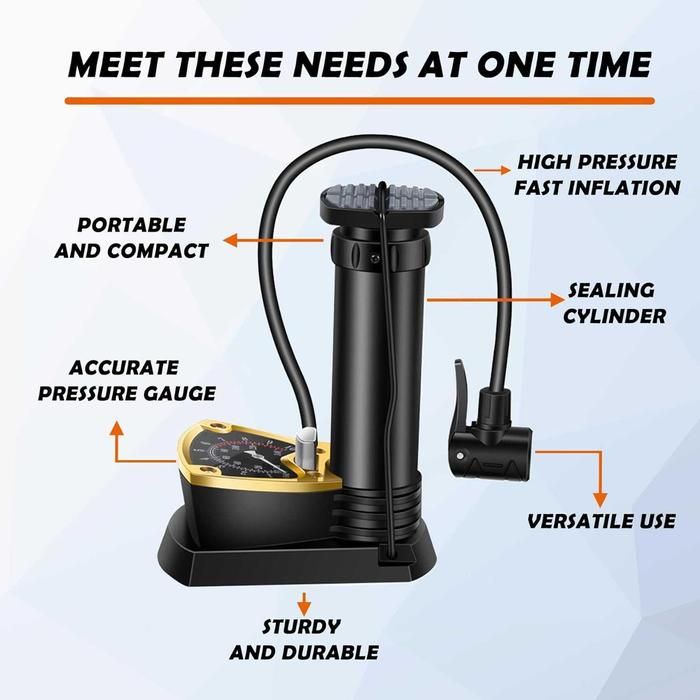 Pompa Angin Kaki Injak 140 PSI - Ban Sepeda Motor dengan Pressure Gauge - Ergonomis & Akurat