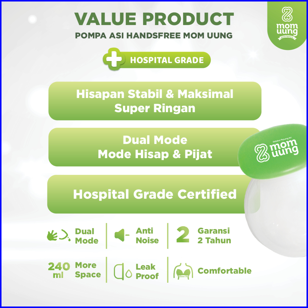 Mom Uung Handsfree Breast Pump Pompa Asi Portable Handsfree Wireless Dual Mode Hospital Grade