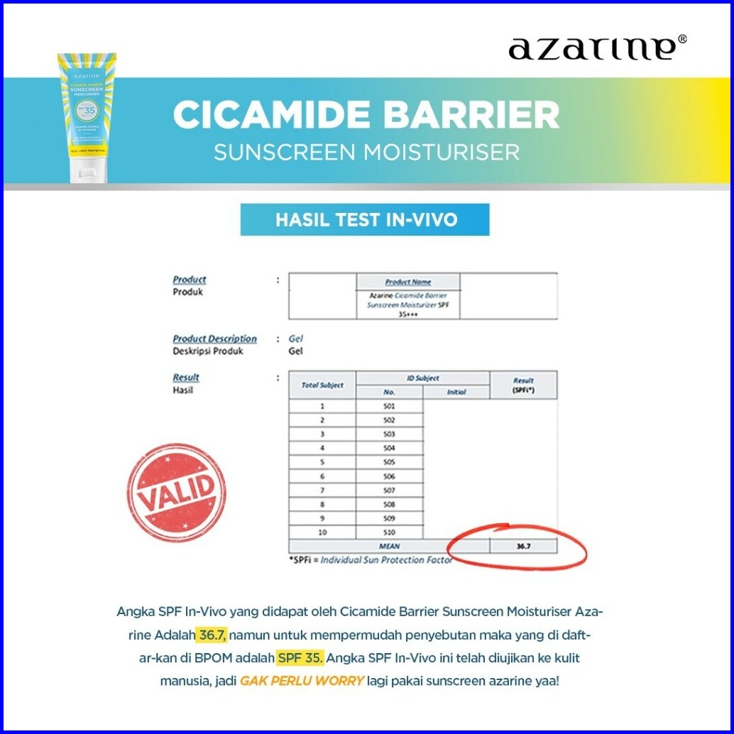 Creator Azarine Cicamide Barrier Sunscreen Moisturiser Spf35 Pa Lolos Uji Invivo Invitro Sunscreen Gel Untuk Skin Barrie