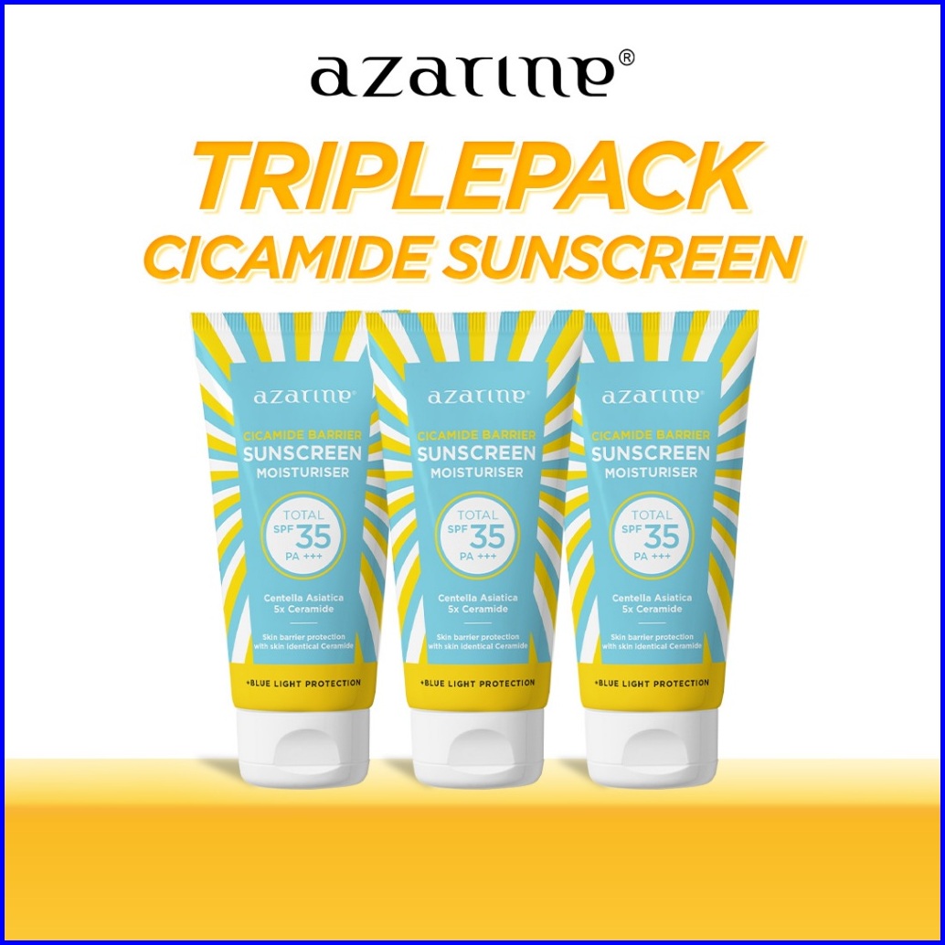 3 Pcs Azarine Triplepack Calm My Acne Sunscreen 3 Pcs Cicamide Barrier Sunscreen Moisturizer Spf35 Pa Lulus Uji Invivo I