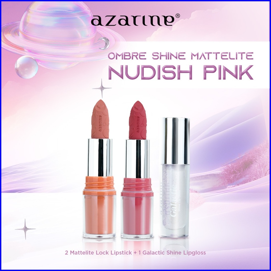 Azarine Ombre Shine Mattelite Kit 3 Pcs Lipstick Matte With Pigmented Color Lightweight Transferproof Smugeproof Galacti