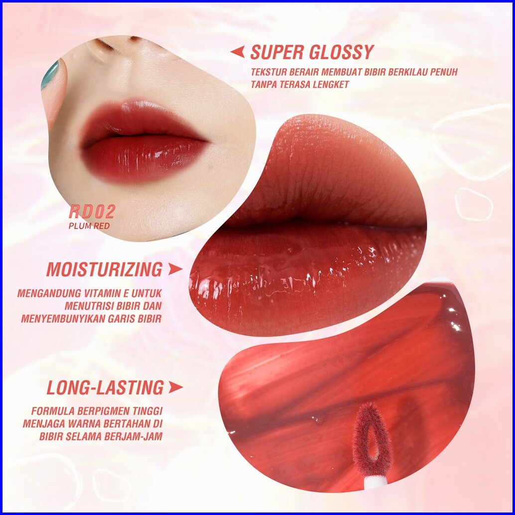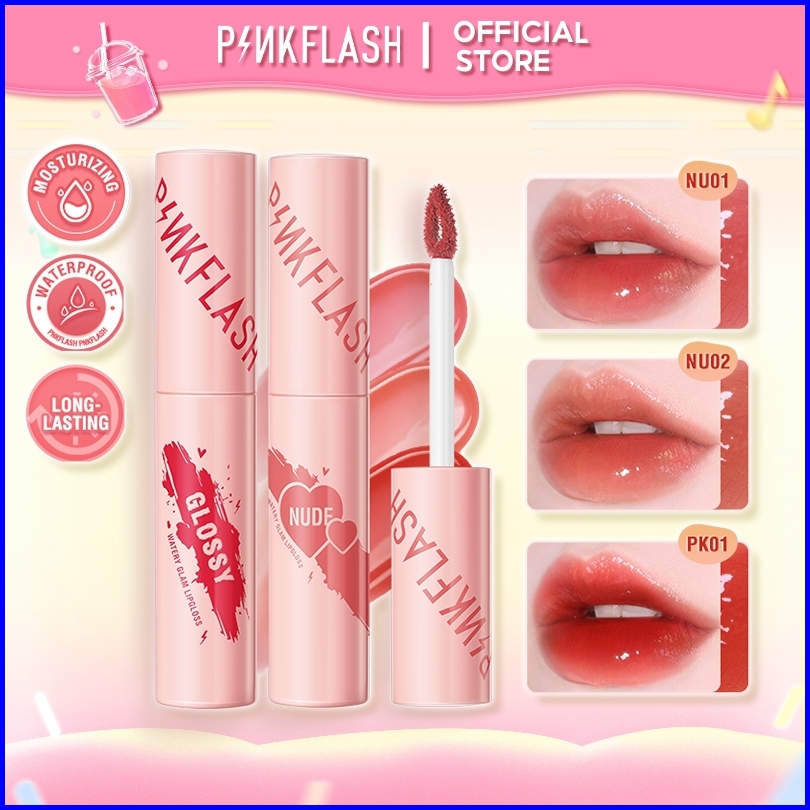 Pinkflash Watery Glam Lip Gloss Lipstick Super Glossy Shiny Moisturizing Non Sticky Long Lasting