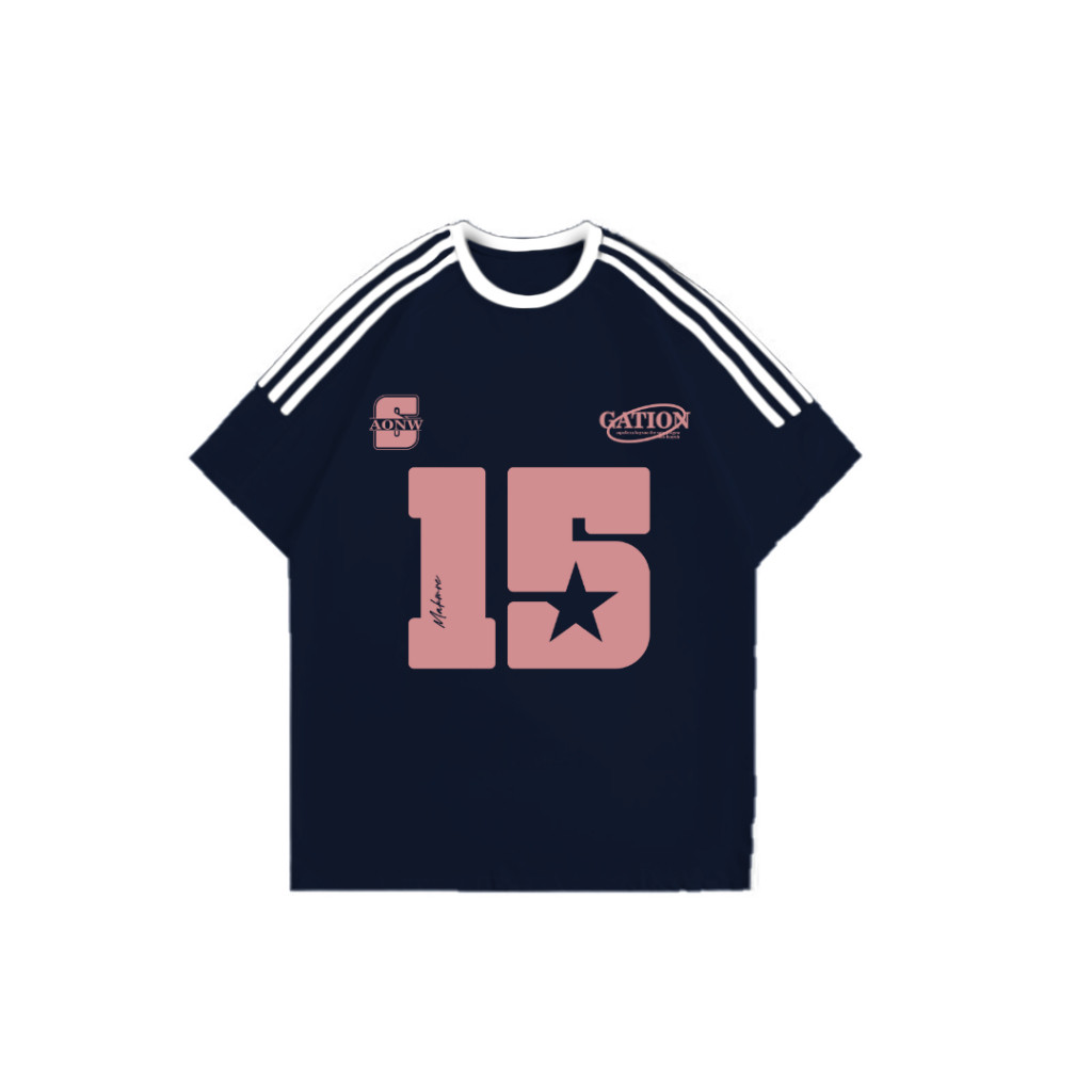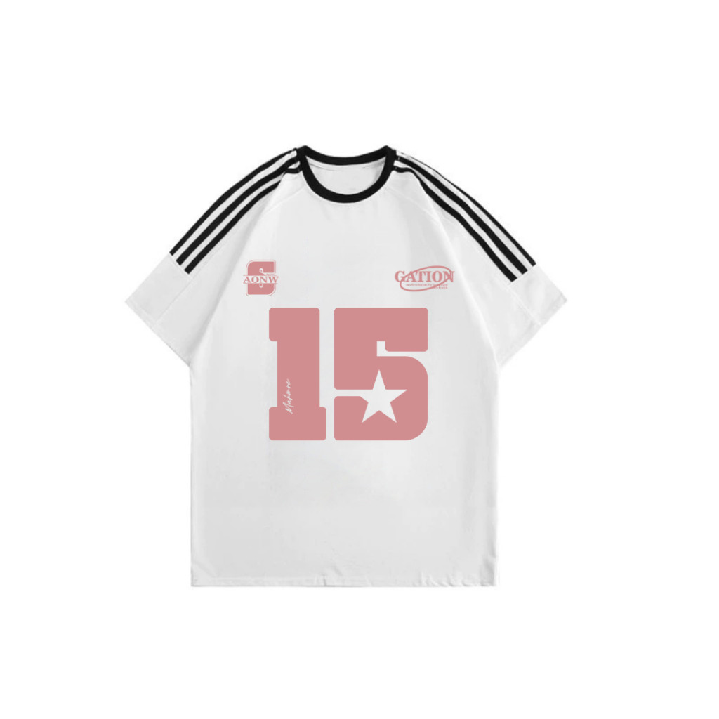 Kaos Garis Tiga Oversize | Gambar Angka 15 | Atasan Wanita Kekinian Korean Style | 100% Cotton