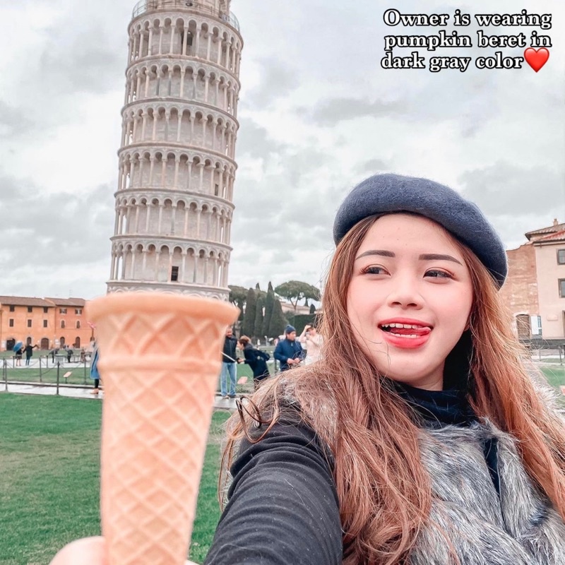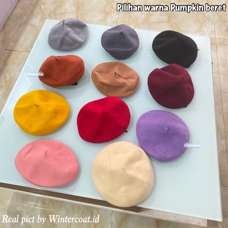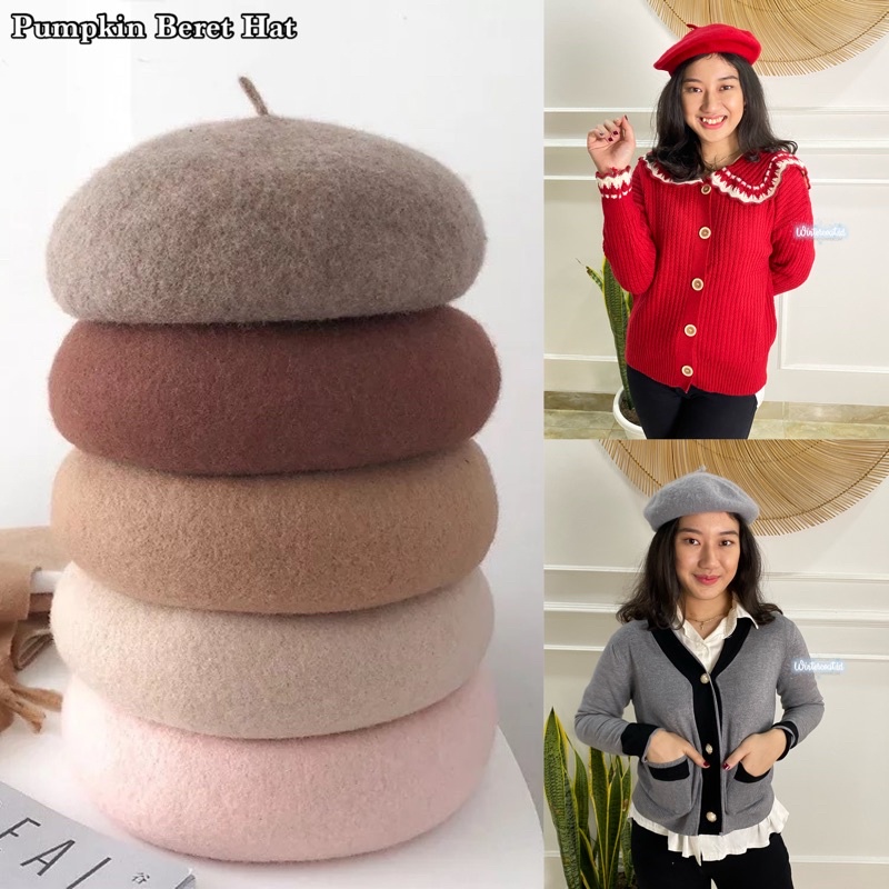 Beret Hat pumpkin wool topi pelukis wol baret vintage kupluk musim dingin wanita import korea