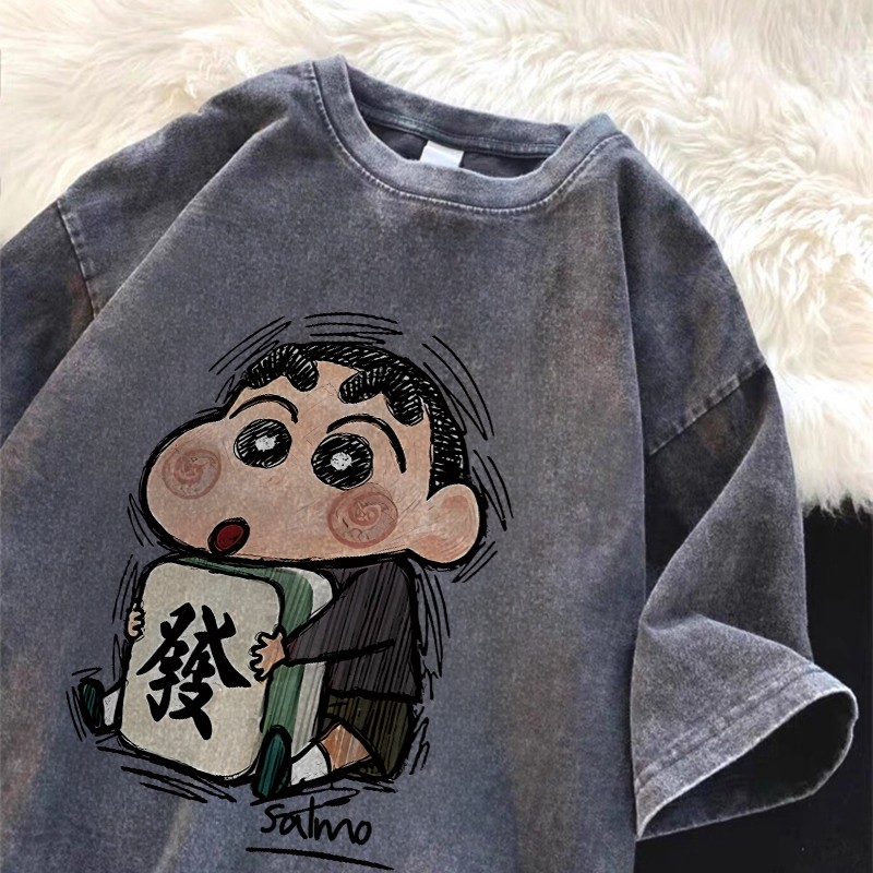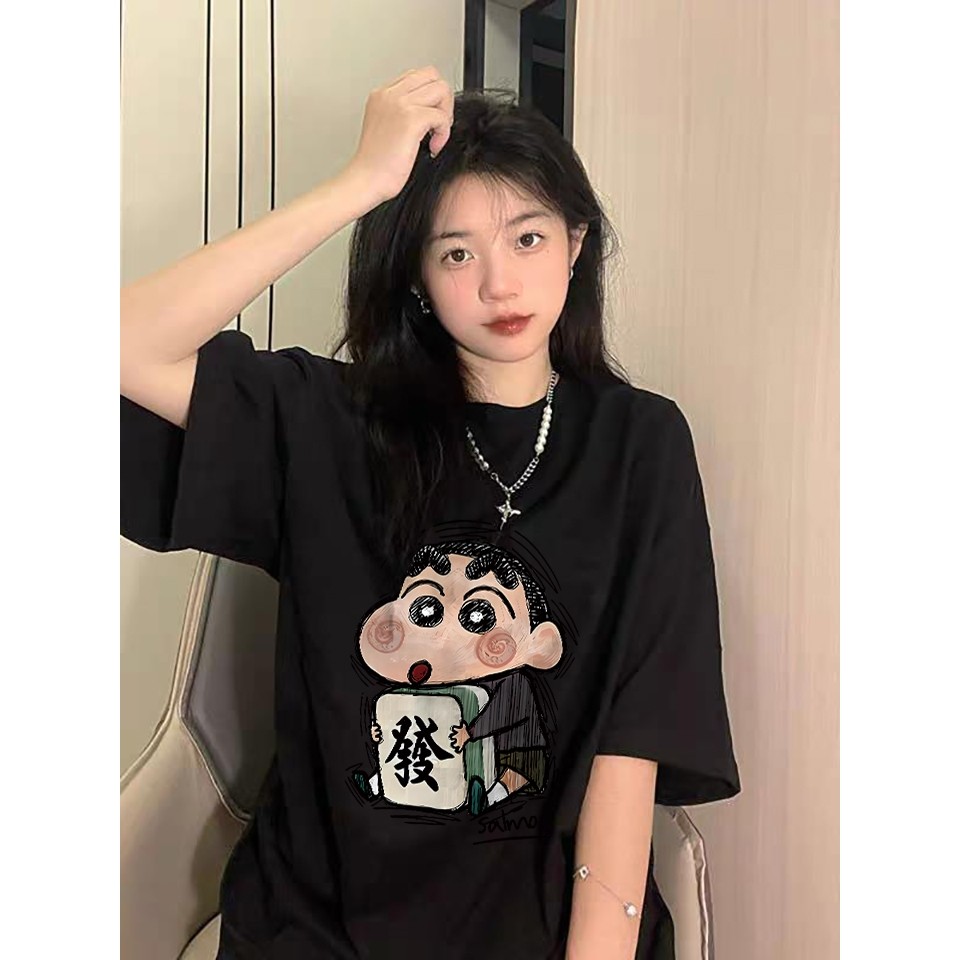 Akdwy Baju Wanita Kaos Prangko Keberuntungan Crayon Shin-chan Baju Kaos Oversize Wanita Korean 100%Cotton | Atasan Wanit