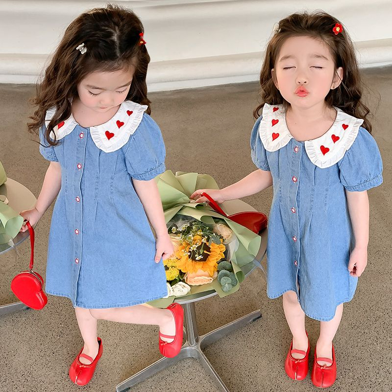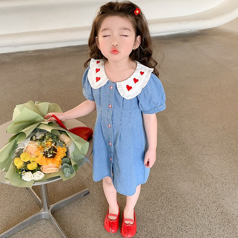 Dress Jeans Love Bordir Anak Perempuan Baju Denim Cewek Nyaman Dipakai Bahan Lembut Untuk Bayi Dan Balita