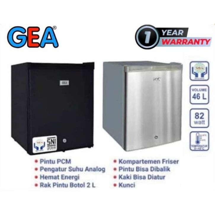 GEA Kulkas Portabel Mini Bar Kapasitas 46 Liter Black/Silver RS-06 DR Garansi Resmi