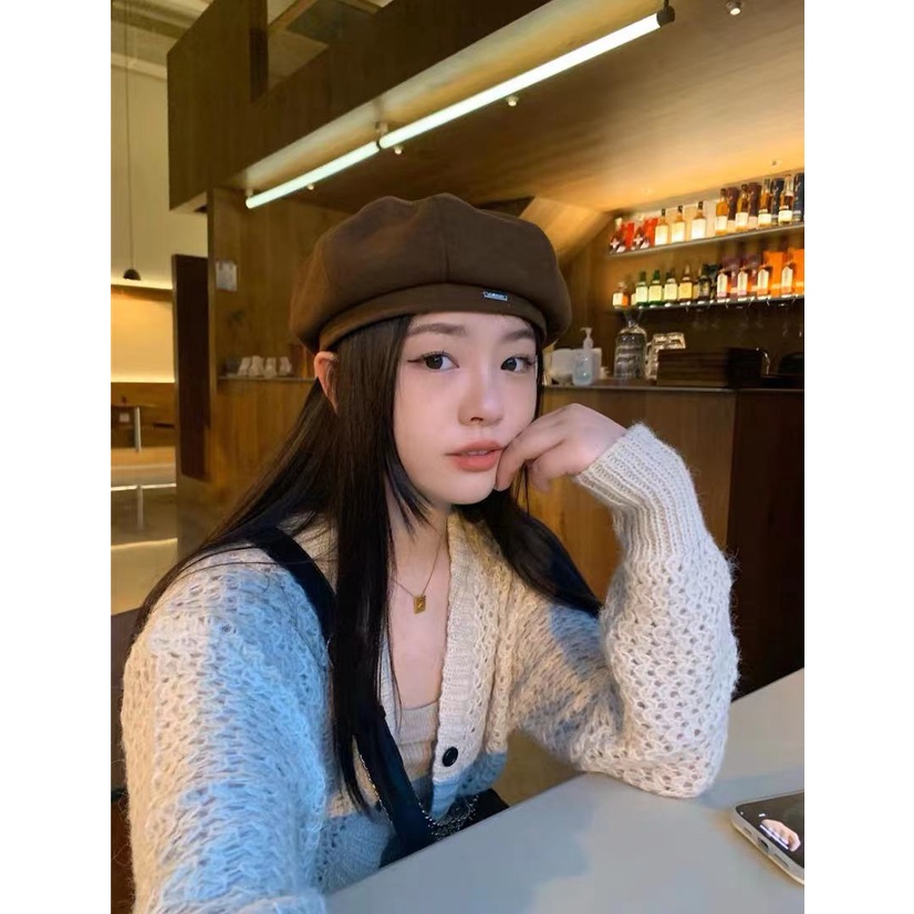 MORPHY Topi Baret Wanita CANVAS Newsboy Hat Flat Cap Kanvas Vintage Gaya Pelukis Aesthetic Retro Musim Gugur dan DinginK
