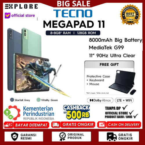 Official Store 🔥 TECNO MEGAPAD 11 - 16GB*/128GB, 11inch Ultra Screen, Eye Care Mode, Sim Card + T-Flash, 8000mAh, RESMI