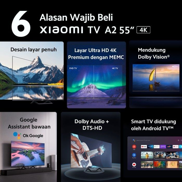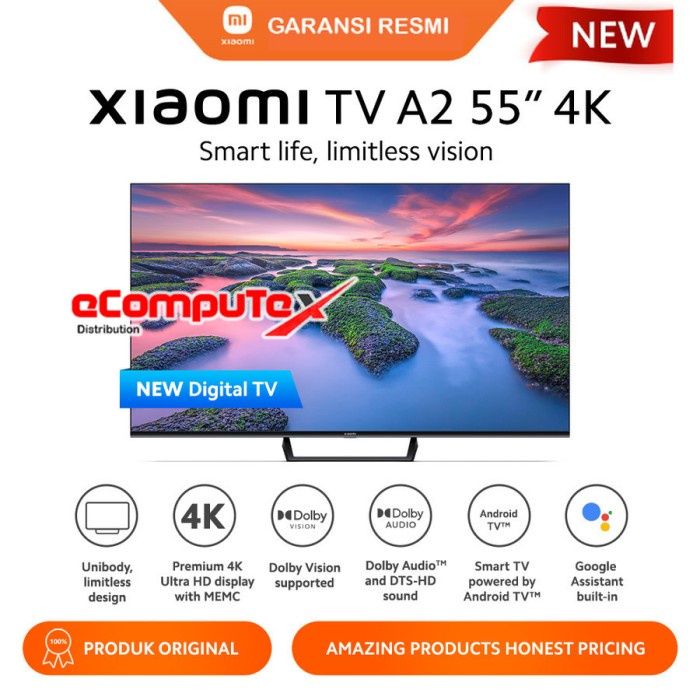 XIAOMI TV A2 / A 2 55 INCH 4K UHD DIGITAL TV SMART ANDROID - GARANSI RESMI